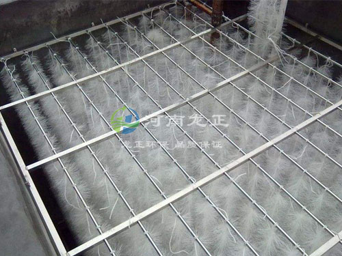 立體彈性填料篩選了聚烯烴類和聚酰胺中的幾種耐腐、耐溫、耐老化的品種,混合以親水、吸附、抗熱氧等助劑,采用特殊的拉絲,絲條制毛工藝,將絲條穿插固著在耐腐、高強度的中心繩上,由于選材和工藝配方精良,剛柔適度,使絲條呈立體均勻排列輻射狀態,制成了懸掛式立體彈性填料的單體,彈性填料在有效區域內能立體全方位均勻舒展滿布,使氣、水、生物膜得到充分混滲接觸交換,生物膜不僅能均勻的著床在每一根絲條上,保持良好的活性和空隙可變性,而且能在運行過程中獲得愈來愈大的比表面積,又能進行良好的新陳代謝。
